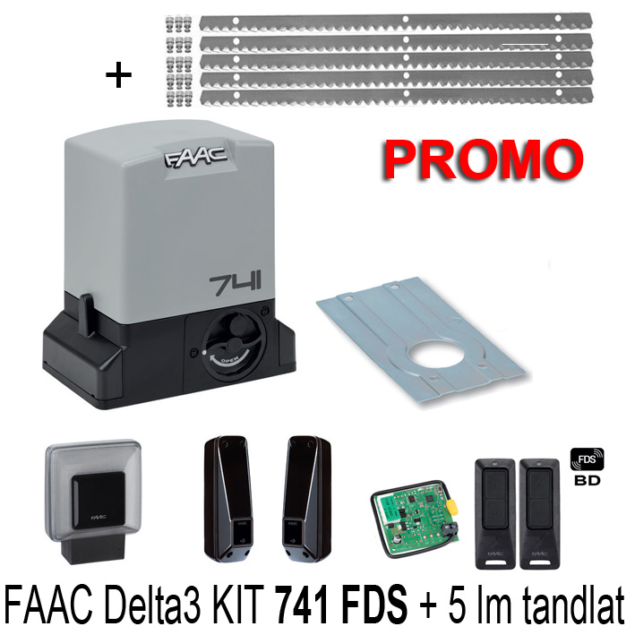 BLACK FRIDAY PROMO tot 29/11 5 lm tandlat verzinkt bij Delta 3 FAAC kit 741 FDS 230V voor schuifhek tot max 900kg - residentieel gebruik, max 12m/min