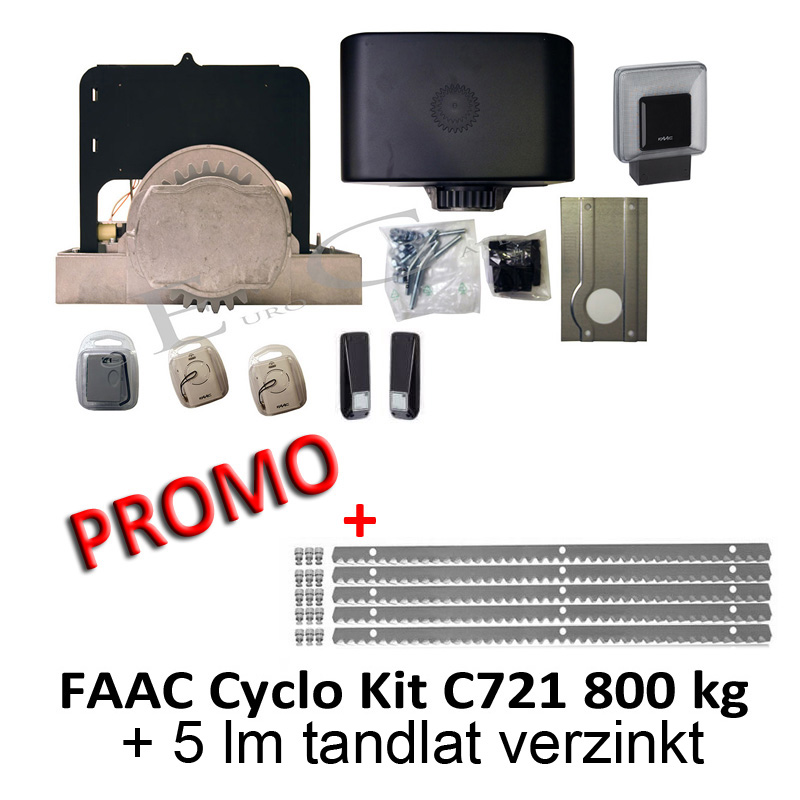 BLACK FRIDAY Promo tot 29/11: 5 lm tandlat verzinkt gratis bij FAAC CYCLO KIT C721 24V voor schuifpoorten tot max 800kg- max 18 m/min