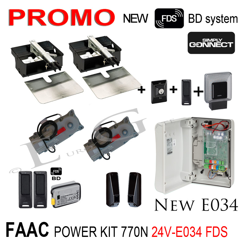 BLACK FRIDAY Promo tot 29/11 GRATIS zender FDS +XLED + XK10B bij FAAC POWER KIT 770N FDS/E034 24V ondergrondse draaihekopener 770N met grondbakken galva