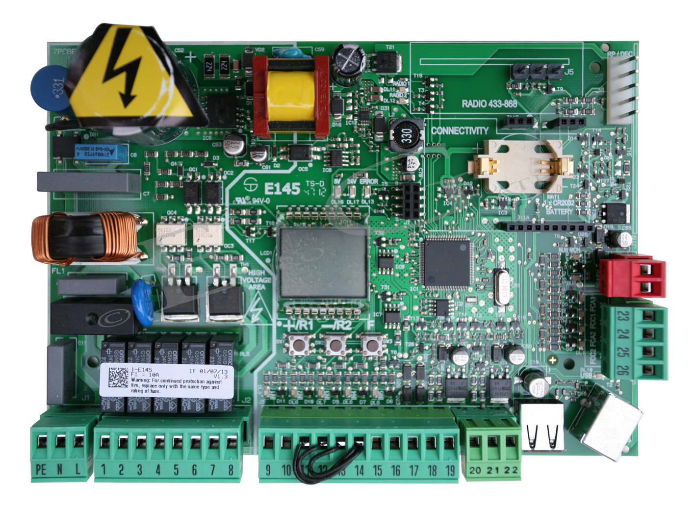 E145 : Motorsturing 230V met display-programmatie via 3 toetsen of via PC/MAC voor geavanceerde programmatie (USB of draadloos); met aansluitmogelijkheid voor SAFEcoder, BUSfotocel & XF of RP inplugontvanger (excl. huizing) Adviesprijs: € 480,13 (- 35 %) Onze prijs excl btw: € 257,92   Artikelnr.